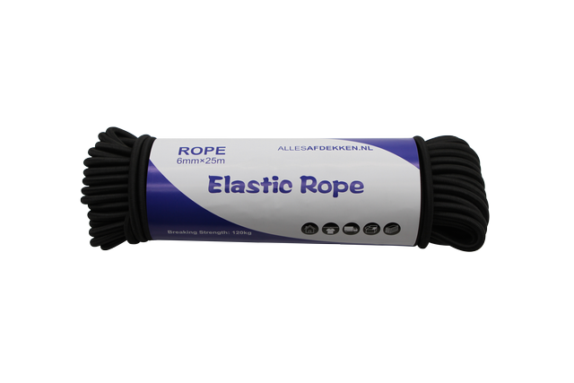 Sie suchen ein starkes und flexibles elastisches Seil (auch bekannt als Shock Cord) zur Befestigung von Abdeck- oder Schutzplanen, Zeltdächern oder Transportladungen? Dieses schwarze 6 mm Gummiseil besteht aus einem robusten Gummikern mit strapazierfähigem Polyestermantel. Dank hoher Elastizität und Langlebigkeit eignet es sich perfekt für den täglichen Einsatz im Haus, beim Transport oder auf dem Campingplatz. Erhältlich in praktischen Bundles von 10 und 25 Metern.