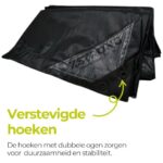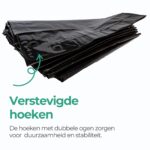Die Xstrong Home 90 Abdeckplane ist eine leichte, kreuzlaminierte Schutzplane für Haus, Garten und Camping. Sie bleibt bei sachgemäßer Verwendung dauerhaft wasserdicht und UV-beständig und franst dank nicht gewebtem Material nicht aus. Ultraschallverschweißte Ösen ohne Metallringe sorgen für eine stabile Befestigung im Abstand von 100 cm. Ideal für Gartenmöbel, Holzstapel, Fahrräder und Camping – eine zuverlässige, wiederverwendbare 90 g/m² Plane in Schwarz.