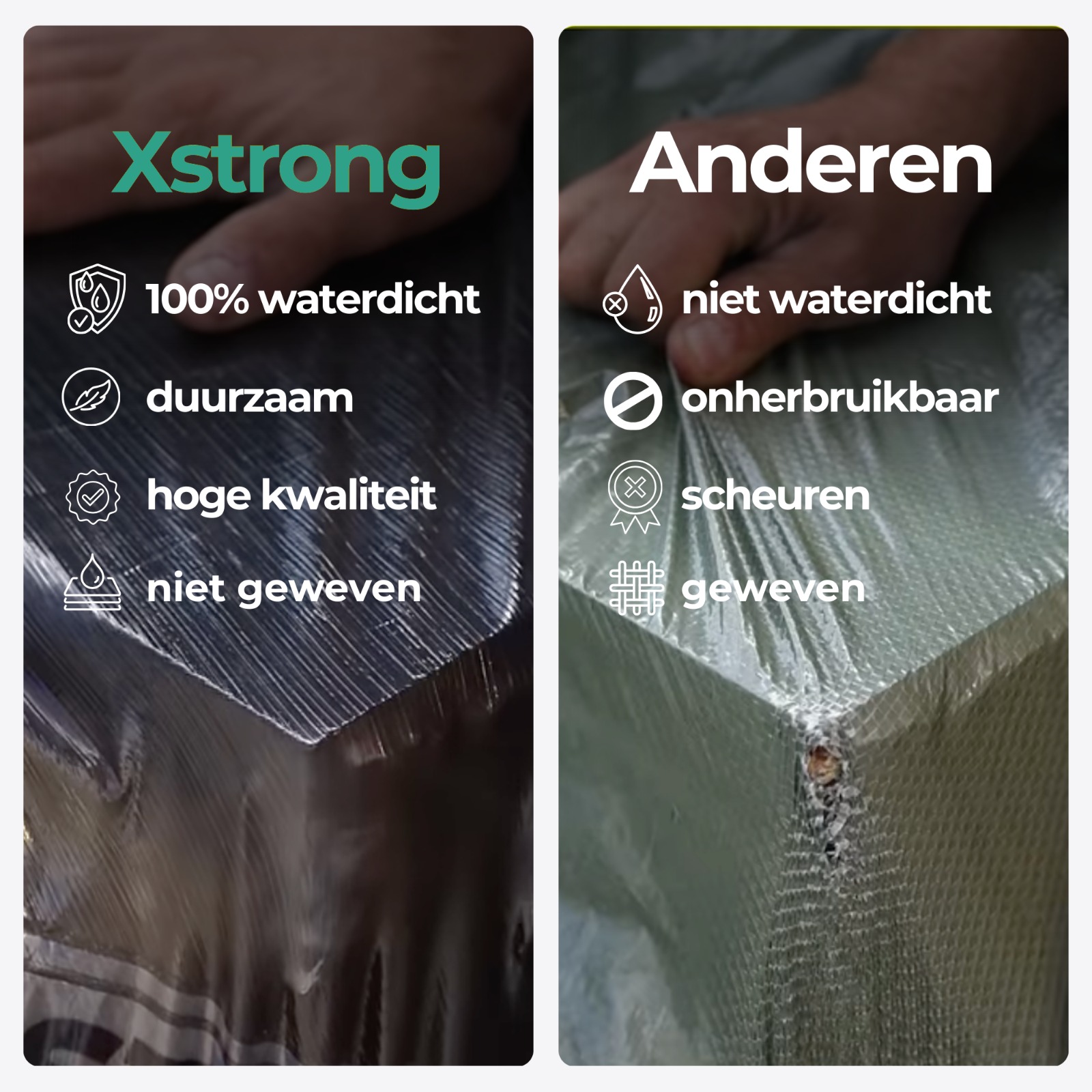 Die Xstrong Home 90 Abdeckplane ist eine leichte, TÜV-getestete Schutzplane für Haus, Garten und Camping. Trotz nur 90 g/m² bleibt sie dauerhaft wasserdicht und UV-beständig. Das nicht gewebte, kreuzlaminierte Material franst nicht aus und ist deutlich robuster als Baumarkt-Planen. Ultraschallverschweißte Ösen ohne Metallringe sorgen für eine stabile Befestigung im Abstand von 100 cm. Ideal für Gartenmöbel, Holzstapel, Fahrräder und Camping.