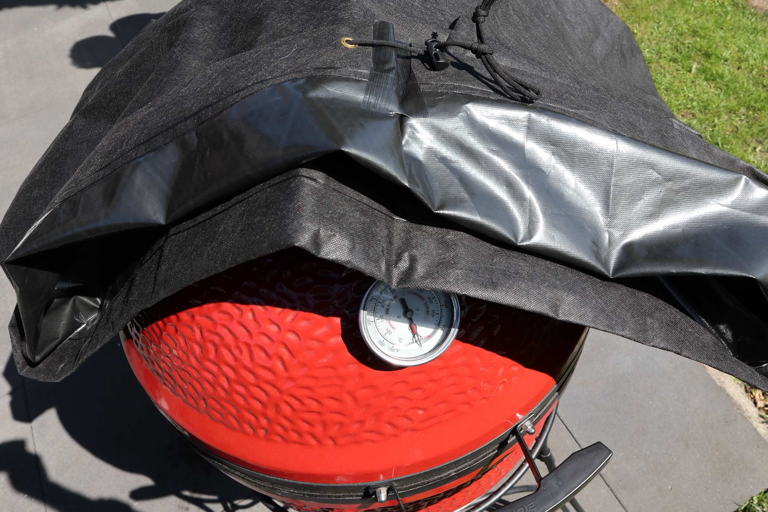 Sie ist UV-beständig, farbecht, reißfest und bleibt auch im Winter flexibel. Erhältlich in drei Größen für die gängigsten Kamado- und Rundgrills.