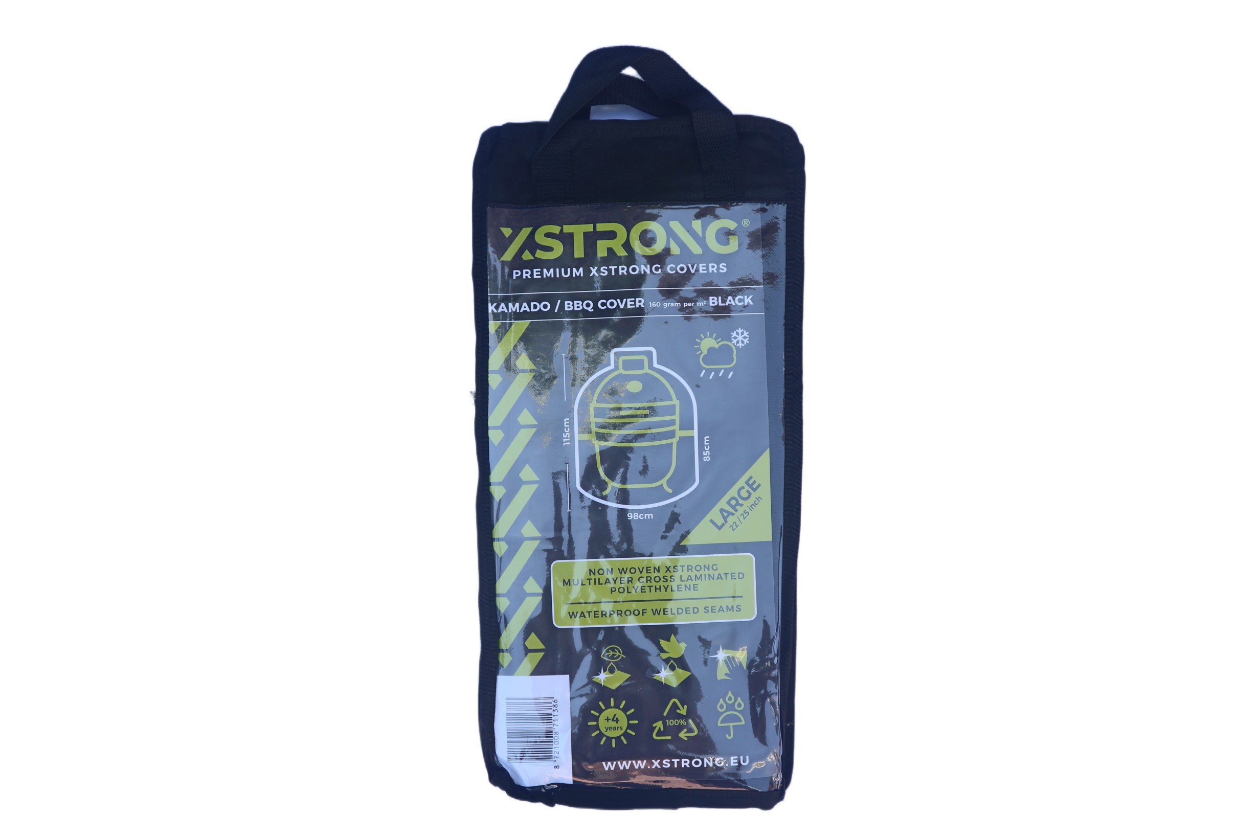 Die Xstrong Premium Cover wurde speziell für Kamado- und Kugelgrills entwickelt, die ganzjährig draußen stehen. Dank verschweißter Nähte, einer dauerhaft wasserdichten Kernschicht und einer extra laminierten Außenseite schützt sie zuverlässig vor Regen, Sonne, Schmutz und UV-Strahlung.
