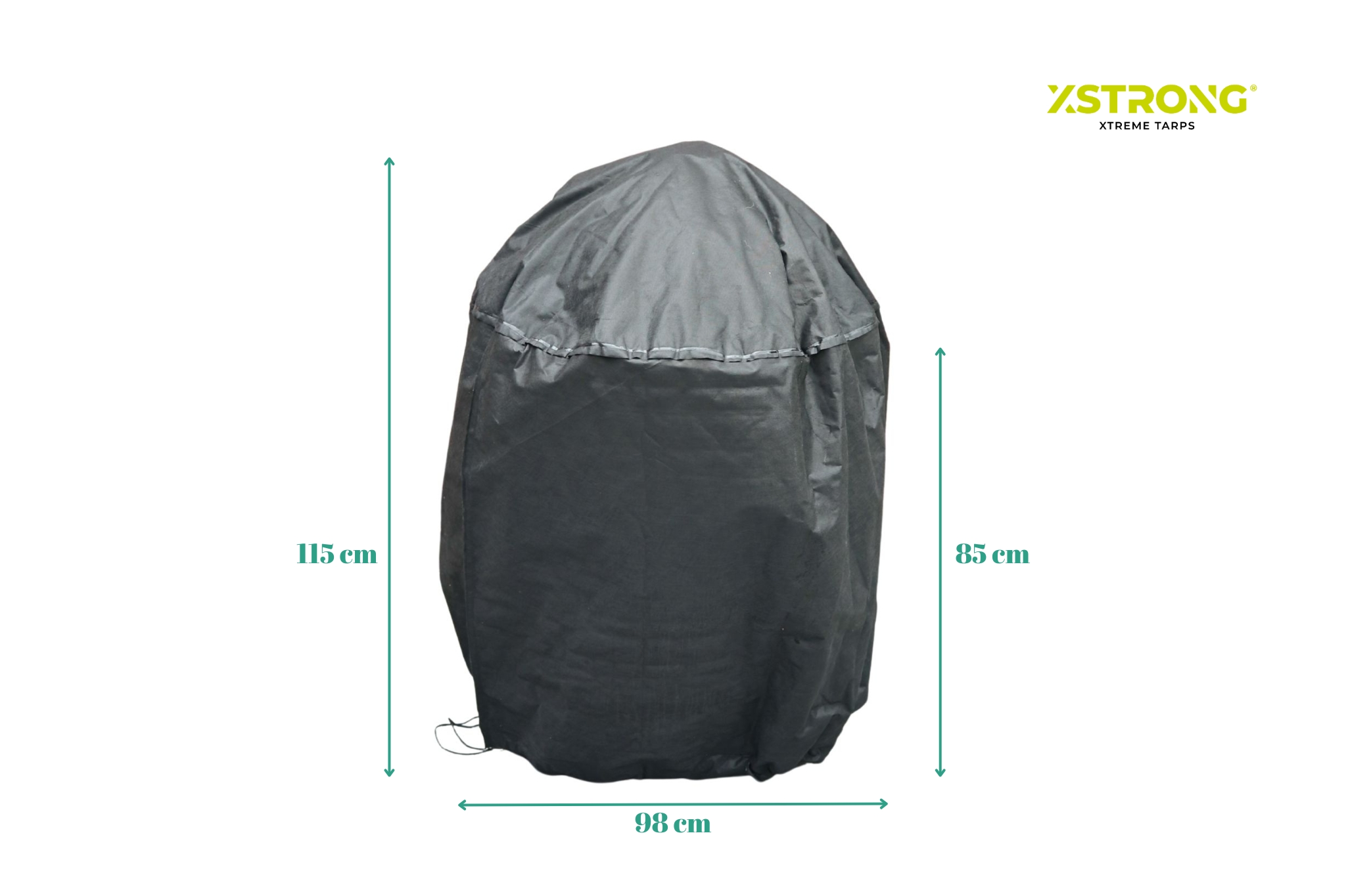 Die Xstrong Premium Grillabdeckung schützt Kamado- und Kugelgrills dauerhaft vor Regen, Sonne und Schmutz. Dank verschweißter Nähte und einem laminierten, wasserdichten Kern bleibt sie dicht ohne Beschichtung, die sich abnutzt. Die UV-beständige, farbechte Oberfläche fühlt sich wie hochwertiger Outdoor-Stoff an, ist aber keiner. Erhältlich in drei Größen für die meisten Grillmodelle.