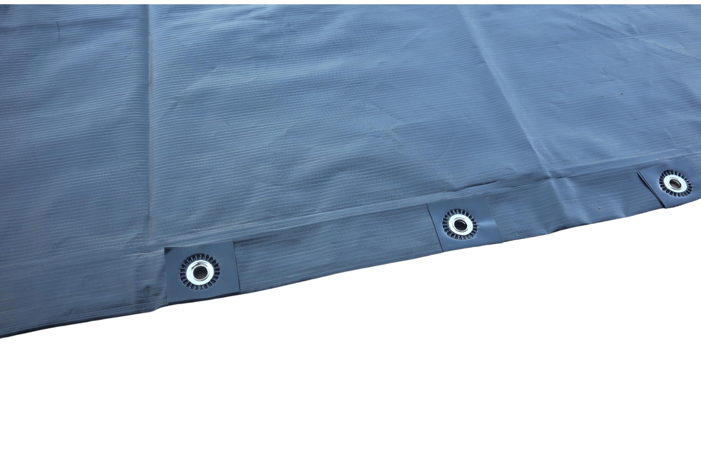 - Ultraschallverschweißte Ösen mit Edelstahlringen: umlaufend alle 25 cm für sichere, straffe Befestigung.