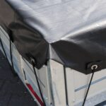 Ein Netz bündelt die Ladung, lässt jedoch Regen und Schmutz durch. Die Pro 300 Abdeckplane hält die Fracht sauber und trocken – auch bei längerem Regen oder stehendem Wasser, sofern sie straff montiert ist und alle Ösen genutzt werden.